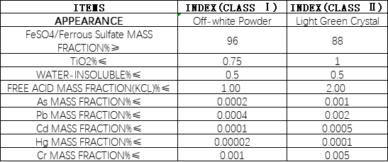 工业级硫酸亚铁,由二氧化钛工厂的副产品直接生产。